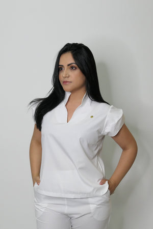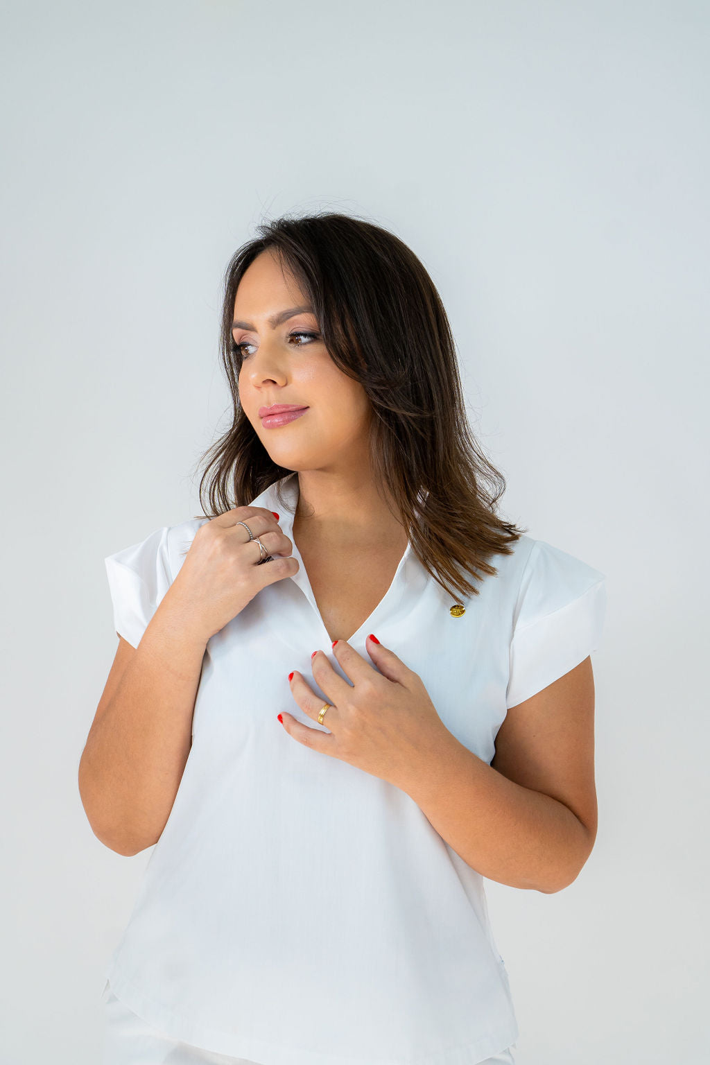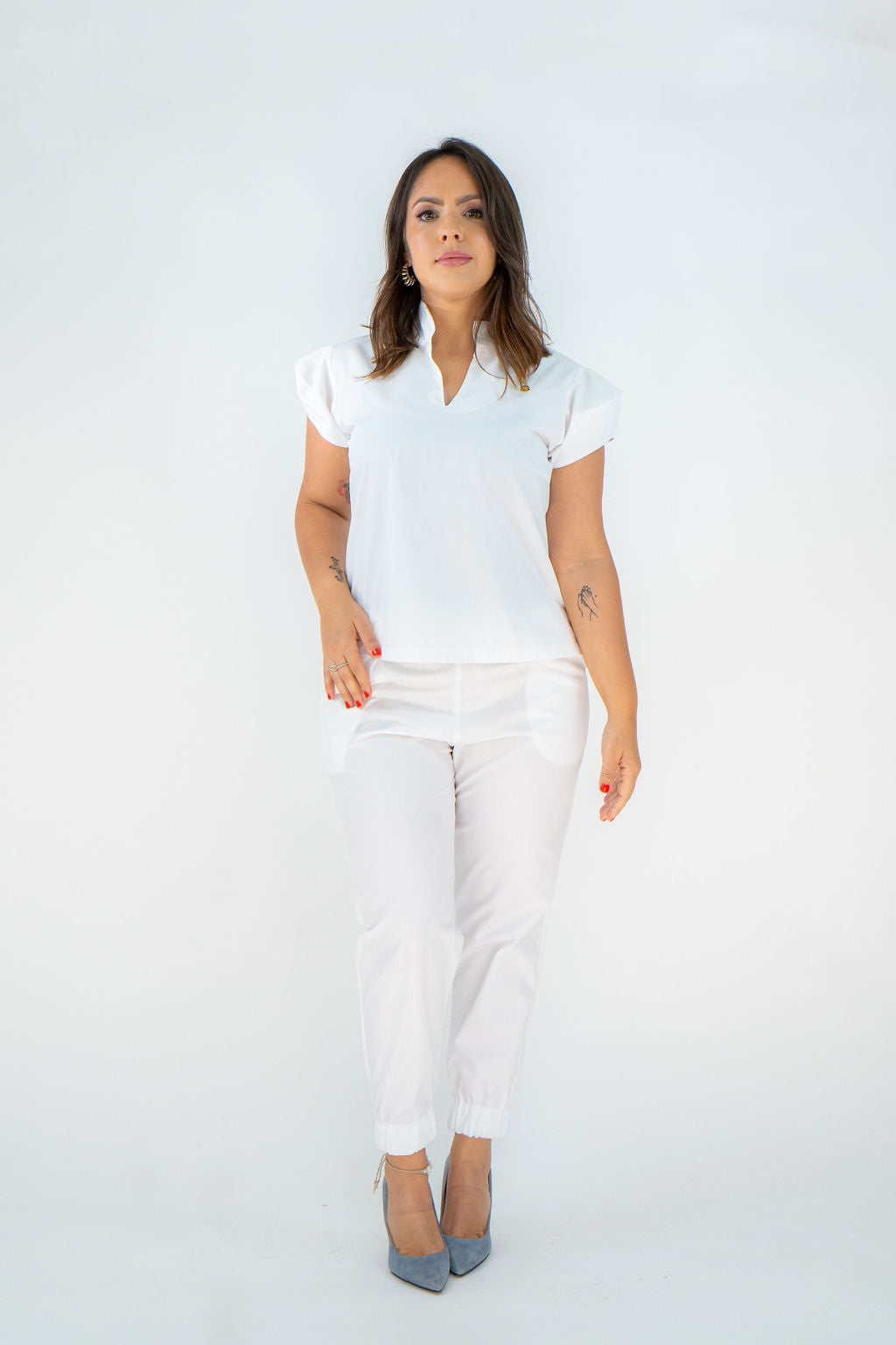 The Bata Salete is made of thick twill fabric, super special, which does not stain easily and has a collar with a priest-type neckline, with a detail in fabric frills, which gives a whole charm to the look and enhances the neck region. The sleeves are anatomically shaped, arched, providing comfort and the use of other pieces underneath, without losing movement.