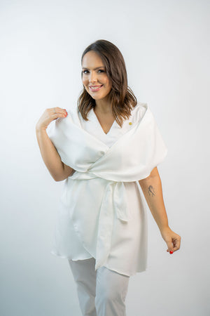 El Chaleco es una pieza atemporal, que aporta estilo y modernidad a cualquier look. Gracias a su modelado estilo kimono, se adapta a cualquier tipo de cuerpo y es la elección adecuada para quienes buscan un look sofisticado y llamativo. Con tejido fresco y fluido, se seca rápidamente y repele líquidos, cabello, polvo, cubriendo las necesidades de las áreas de Salud y Estética.