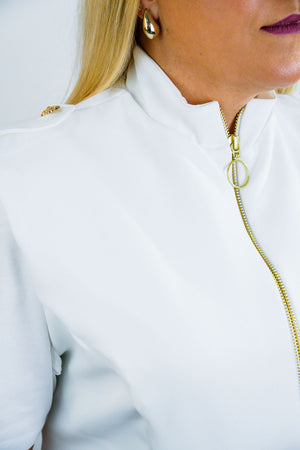 La chaqueta midi Nanna está confeccionada con un tejido noble, trabajado en tejidos texturizados y elásticos que ofrecen un toque sastre suave y elegante. Cremallera única, cierre central minimalista que garantiza un toque de elegancia y clase.