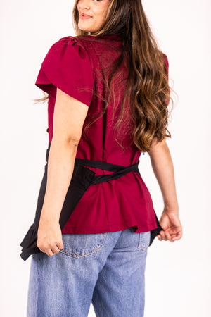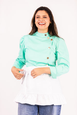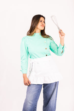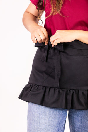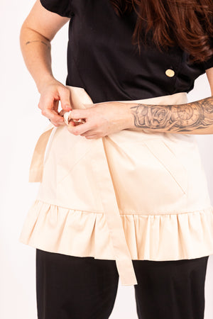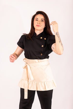O Avental Flora tem estilo Romantico, é fabricado em tecido encorpado de Sarja , oferece conforto e estilo. Possui cintura média, modelo curto, proporcionando movimento e deixando a produção, para além de funcional, com um toque super feminino e romantico. Possui bolso frontal (estilo ganguru), para servir de apoio.