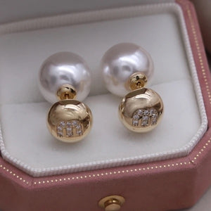 Design: Esfera de pérola que se encaixa com brinco redondo de zircônias cravejadas.