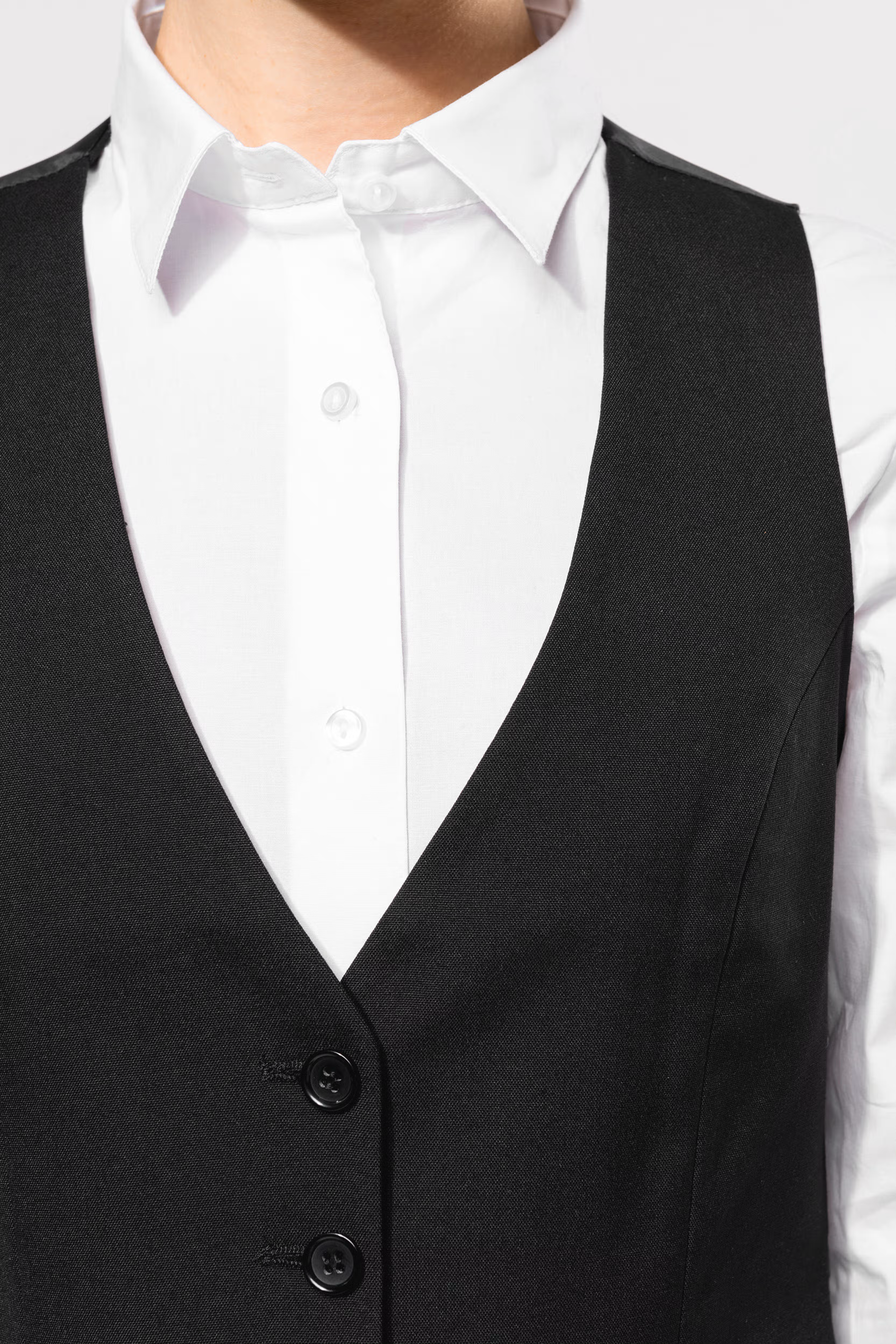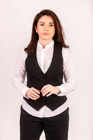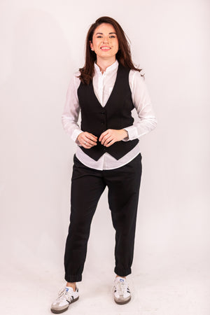 Este colete é a peça-chave para um visual elegante e profissional. Com um corte justo e estruturado, foi desenhado para assentar perfeitamente sobre uma camisa, realçando a silhueta com discrição e classe.