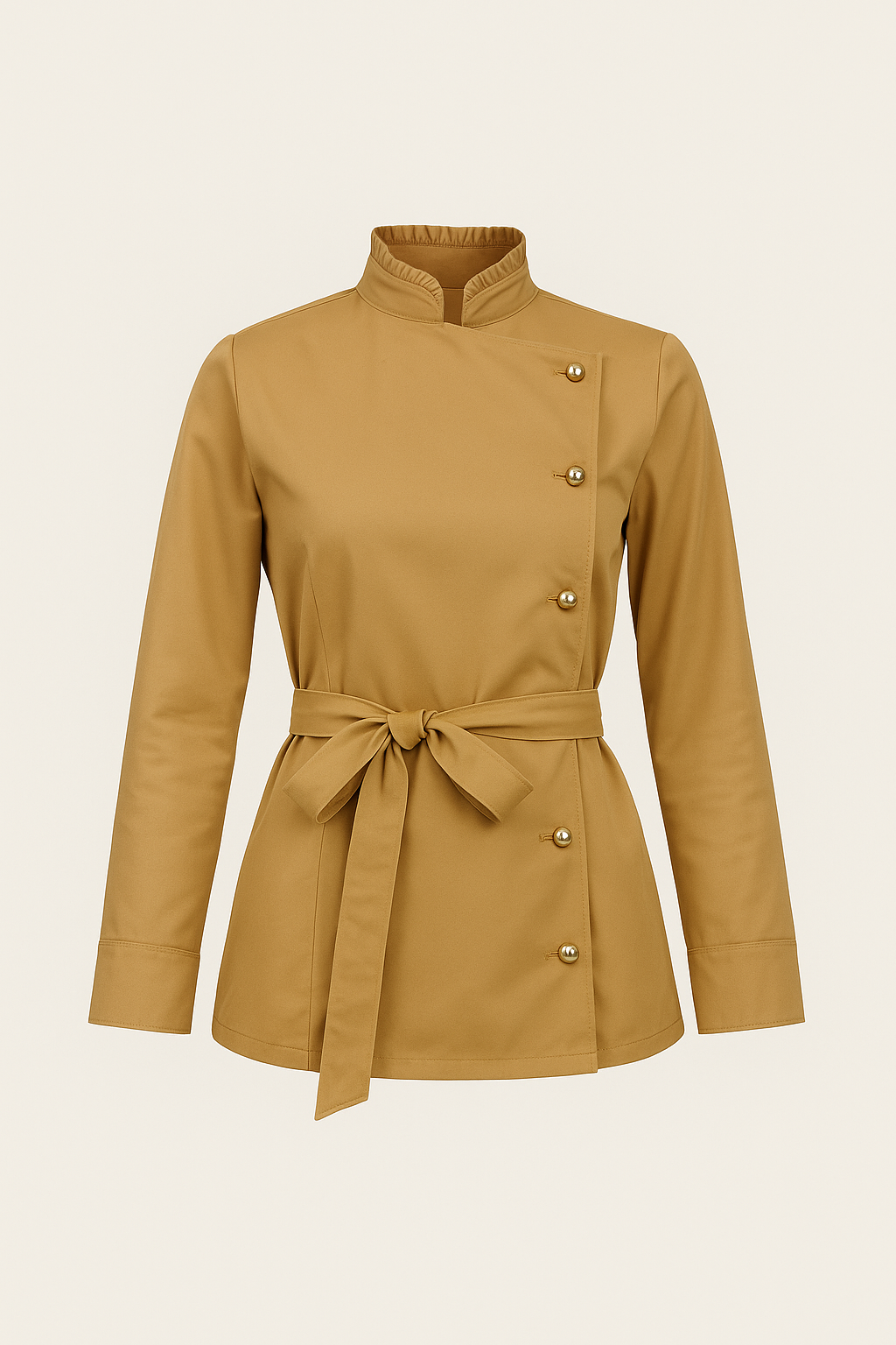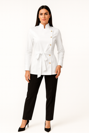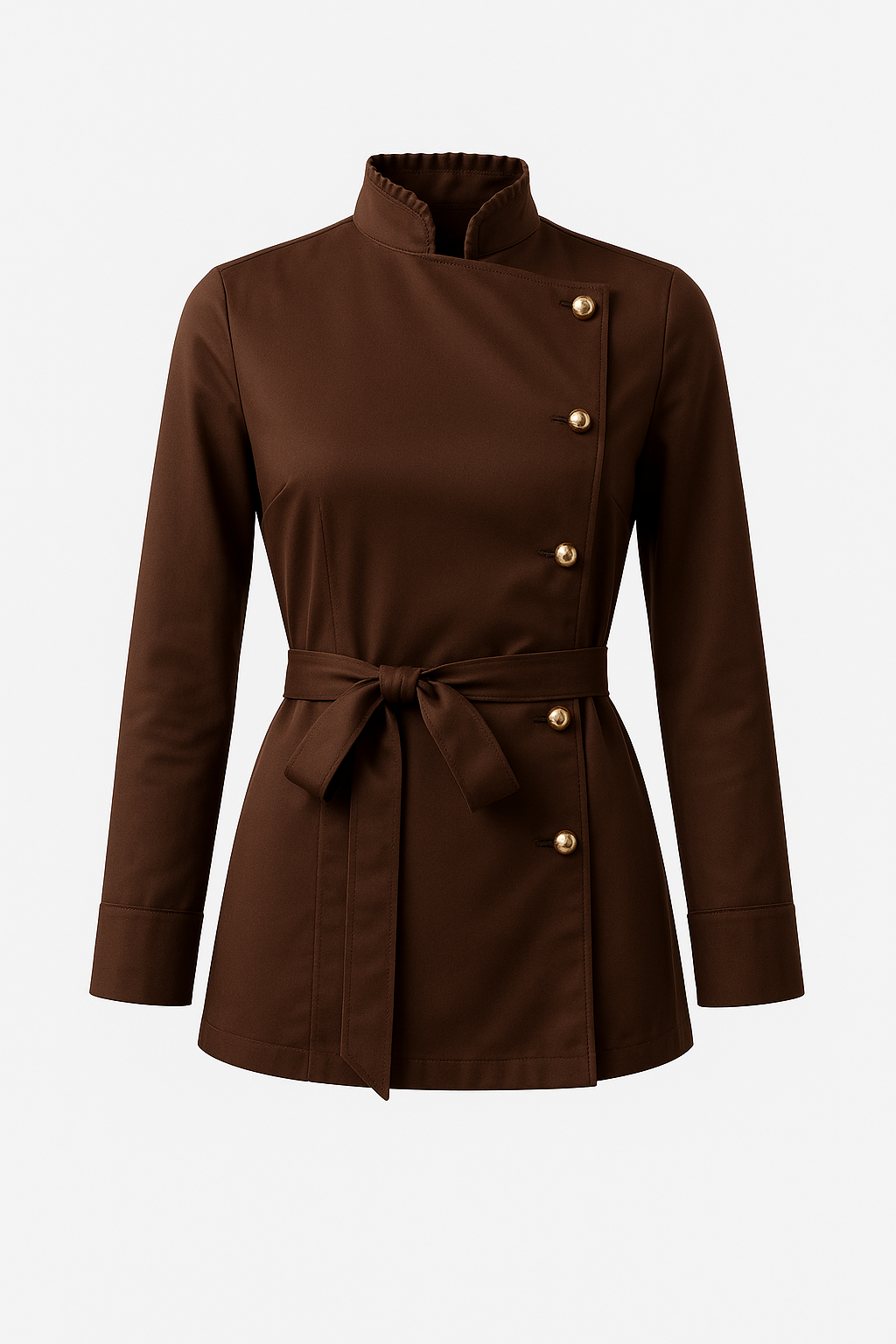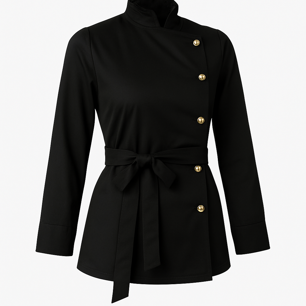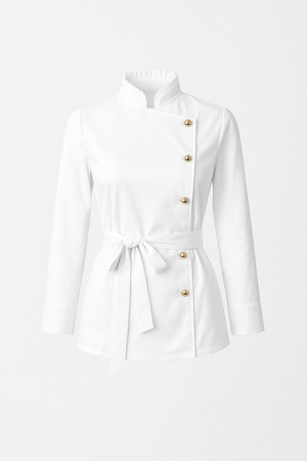 Imponente e refinado, o Dólmã Selene é a escolha perfeita para profissionais que desejam unir elegância, praticidade e presença. Confeccionado em sarja 100% algodão com corte cintado, possui faixa para destacar a cintura e acabamentos impecáveis, ele traduz uma estética clássica com toque contemporâneo — ideal para quem quer se destacar com maturidade e autoridade.
