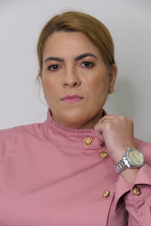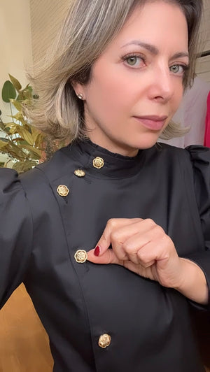 - Botões Metálicos Dourados.