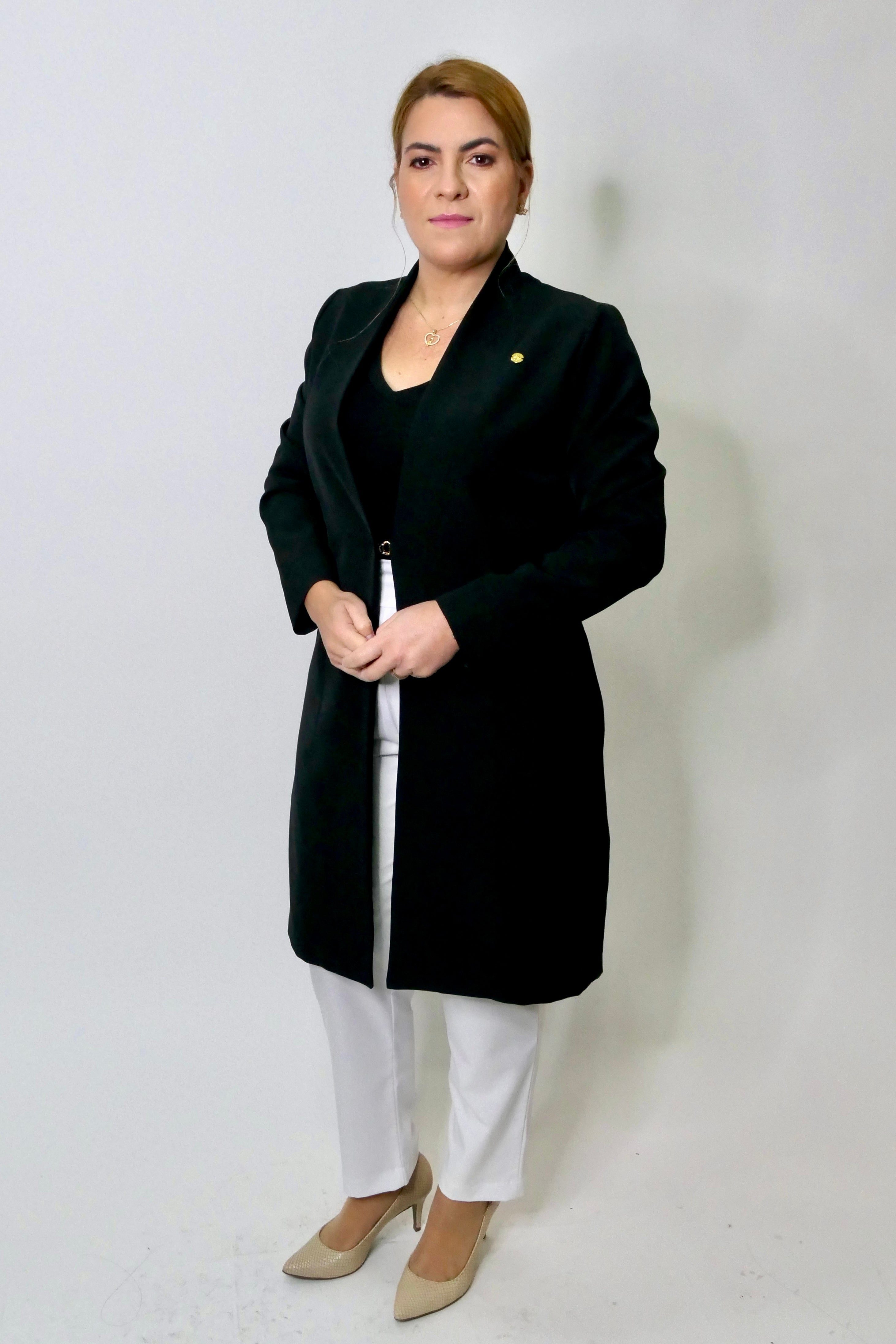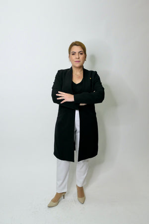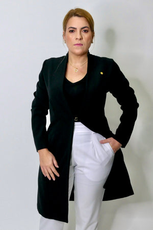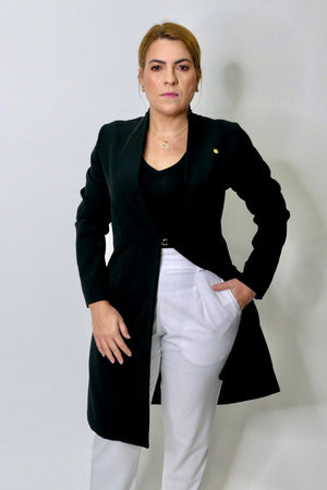 O Jaleco Nanna midi é fabricado em tecido nobre, trabalhado em tramas texturizadas, com elasticidade, que oferecem um toque macio e elegante de alfaiataria. Fecho único, central minimalista que garantem um toque de elegancia e classe!