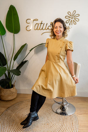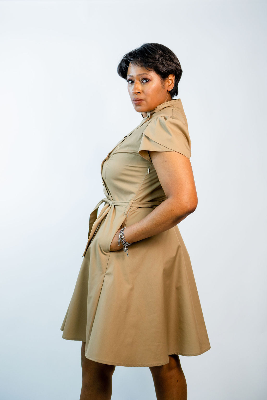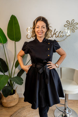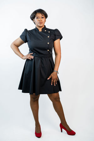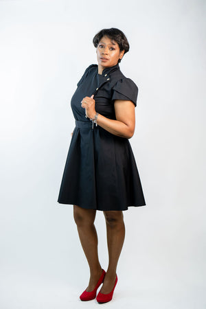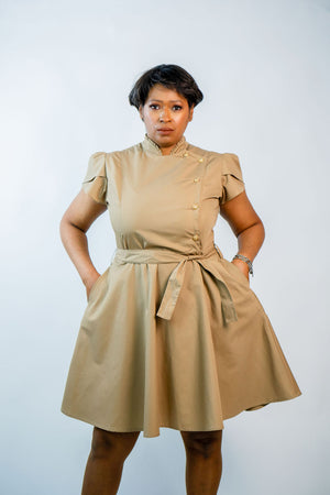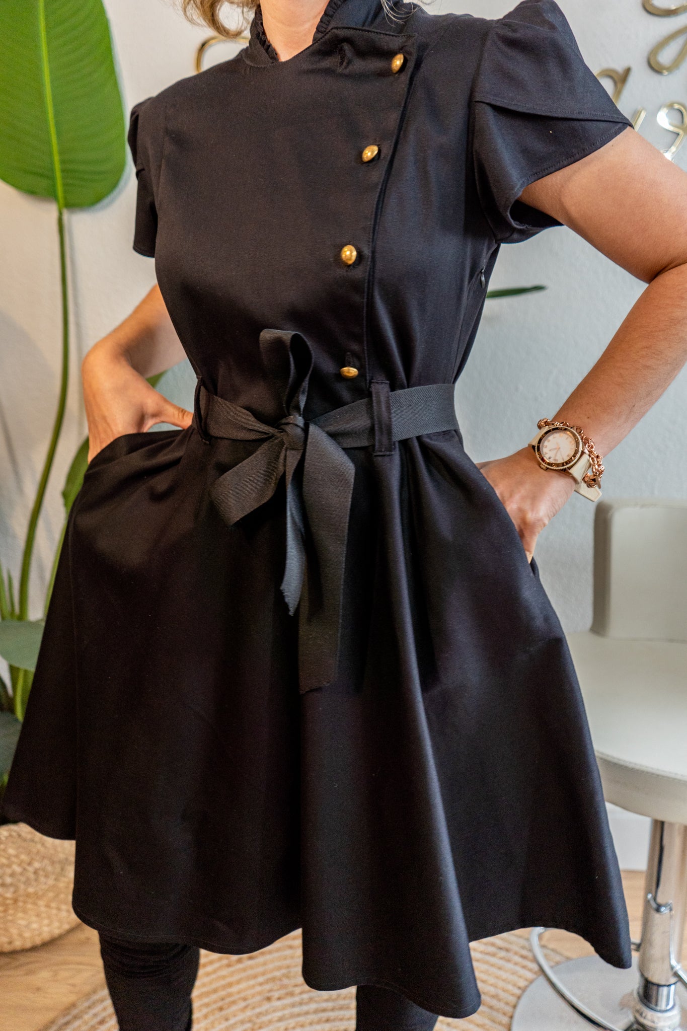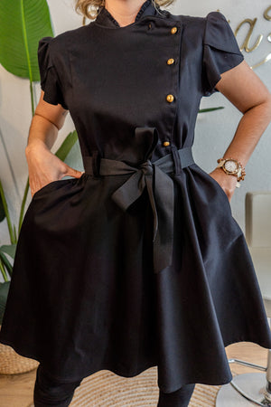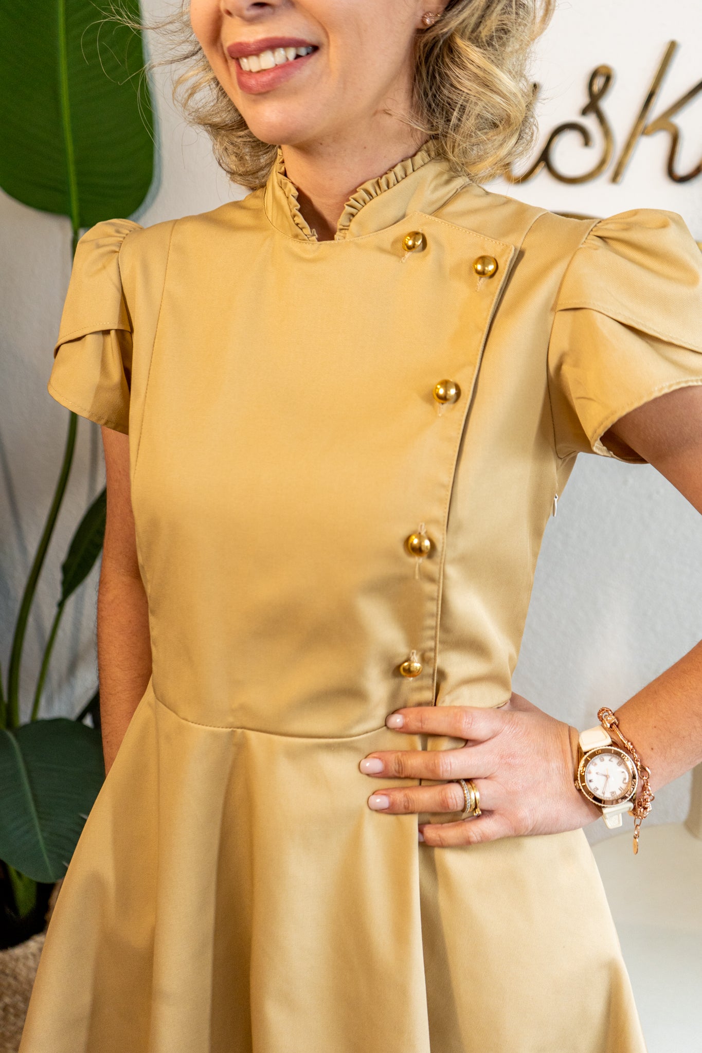 O DólmãVest Nix é um VESTIDO fabricado em tecido de sarja super especial e macia, que possui uma saia Evasê com bolsos de apoios laterais, com modelagem acinturada de caimento perfeito, transmitem muita feminilidade e autoridades. Seus botões dourados, remetem a sofisticação, com um cinto em tecido para ajustar a cintura com muito charme.