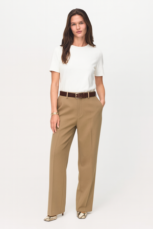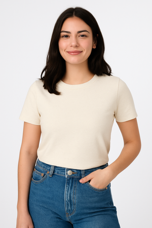 Confeccionada em 100% algodão biológico penteado, esta peça une sofisticação natural e compromisso com a sustentabilidade. O corte justo valoriza a silhueta com conforto, enquanto as costuras laterais e o reforço nos ombros, no mesmo tecido, garantem caimento e durabilidade superiores.